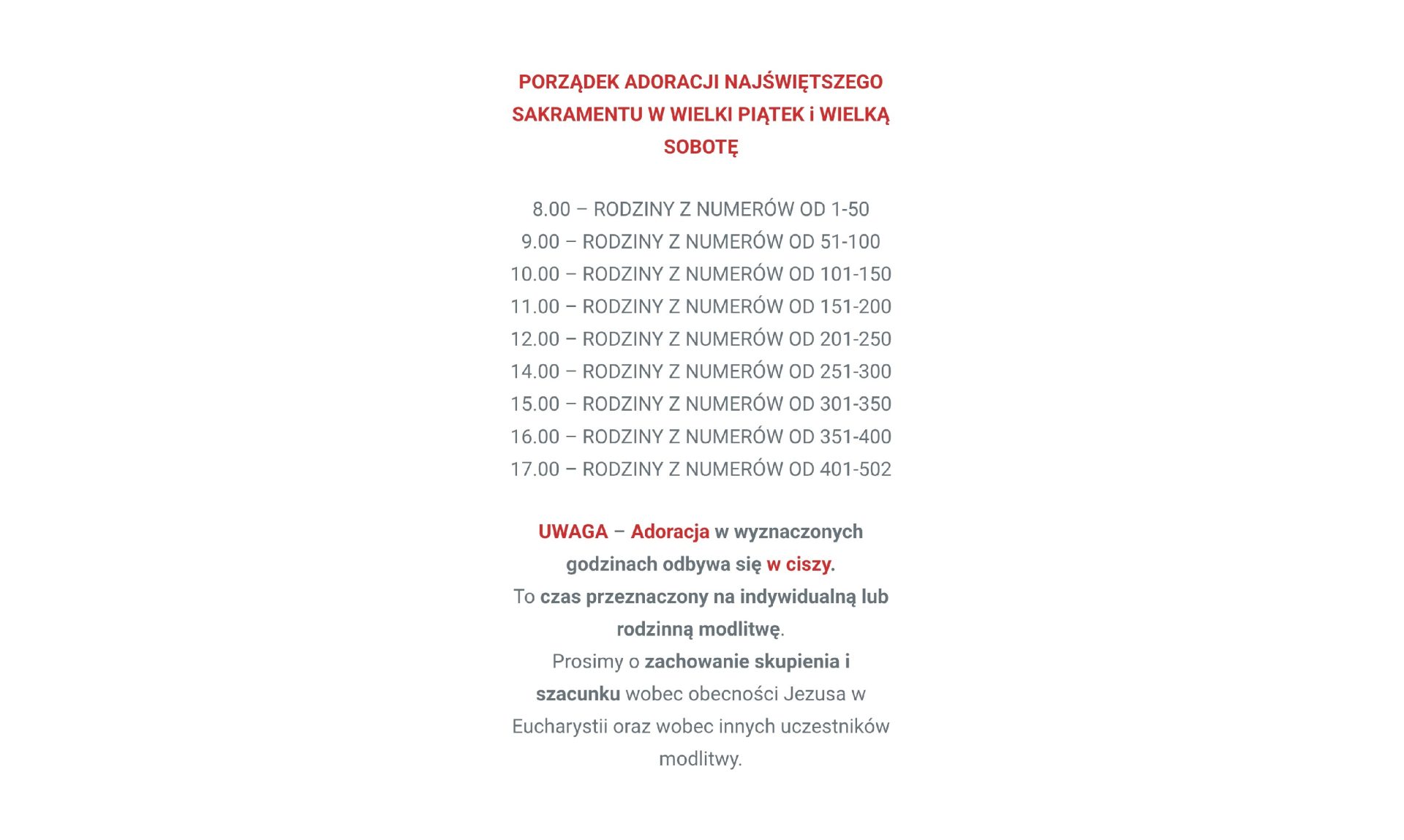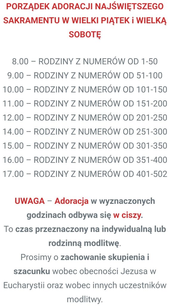 Adoracja Najświętszego Sakramentu w Wielki Piątek i w Wielką Sobotę – 2026 r.